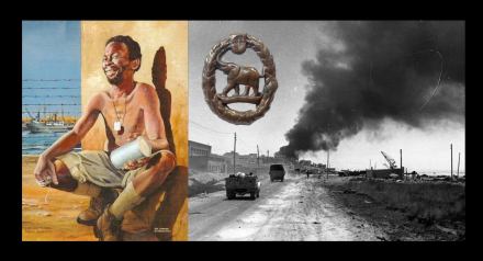 Job placed his home-made bomb deep inside the bowels of a German freight ship (and “F” Boat) that was docked in the harbour at Tobruk. He skilfully placed it next to fuel barrels for maximum effect, lit the fuse and made good his escape. Had he been caught, as a Black POW, he would have certainly been put to death if not tortured first.