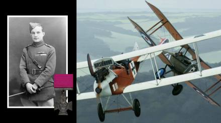 For conspicuous gallantry and devotion to duty while leading offensive patrols. He has lately destroyed three enemy machines, driven down one other completely out of control, and carried out valuable work in attacking enemy troops and transport on the ground from low altitudes. He has done splendid service.