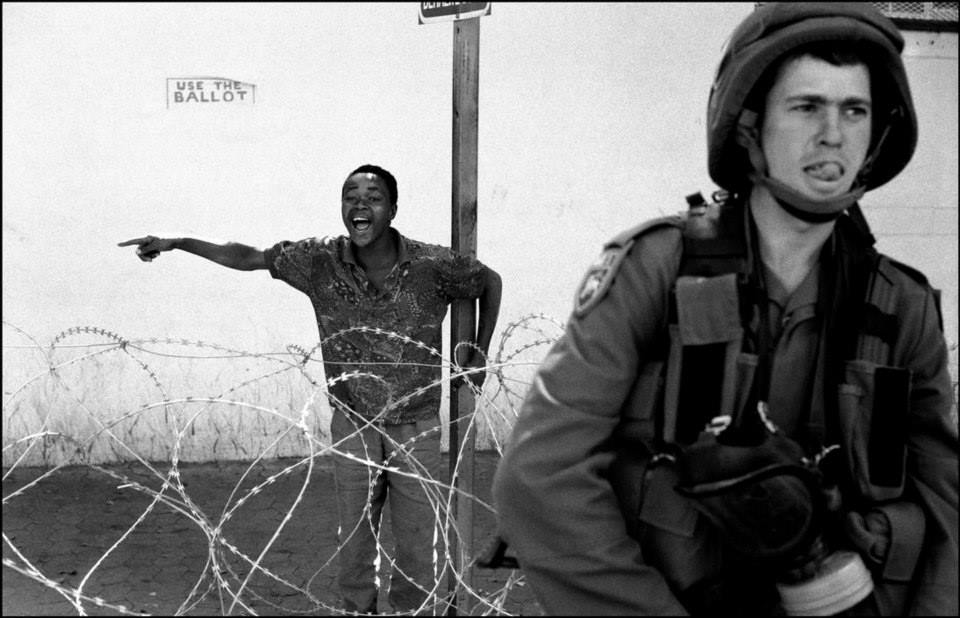 1002208_205501559619584_386269910_n Published January 2, 2017 at 960 × 618 in The Inconvenient ‘Struggle Heroes’ of Freedom Day ← Previous Next → Armed SADF guards a election booth behind razor wire in downtown Johannesburg, a newly enfranchised South African points the way to the booth