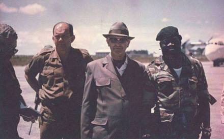 This featured informal ‘happy snap’ of Magnus Malan, PW Botha and Jonas Savimbi on the Angolan border speaks volumes – it most certainly highlights the political edict “the enemy of enemy is my friend” and carries with it the typical sort of politics which involves ‘odd bedfellows’; the kind of story which involves intrigue, betrayal and political assassination.