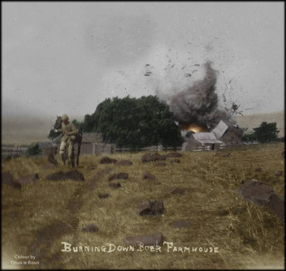 28699287_1608270105876259_4601684936069398143_o Published December 6, 2018 at 1536 × 1456 in Debunking the myth that the British invented the ‘concentration camp’ ← Previous Next → Phase 2 ‘Guerilla Warfare’ of the South African War (1899-1902), British burning of Boer farmsteads as a tactic to cut the supplies to and support of Boer Commando’s food, feed, recruits and ammunition.