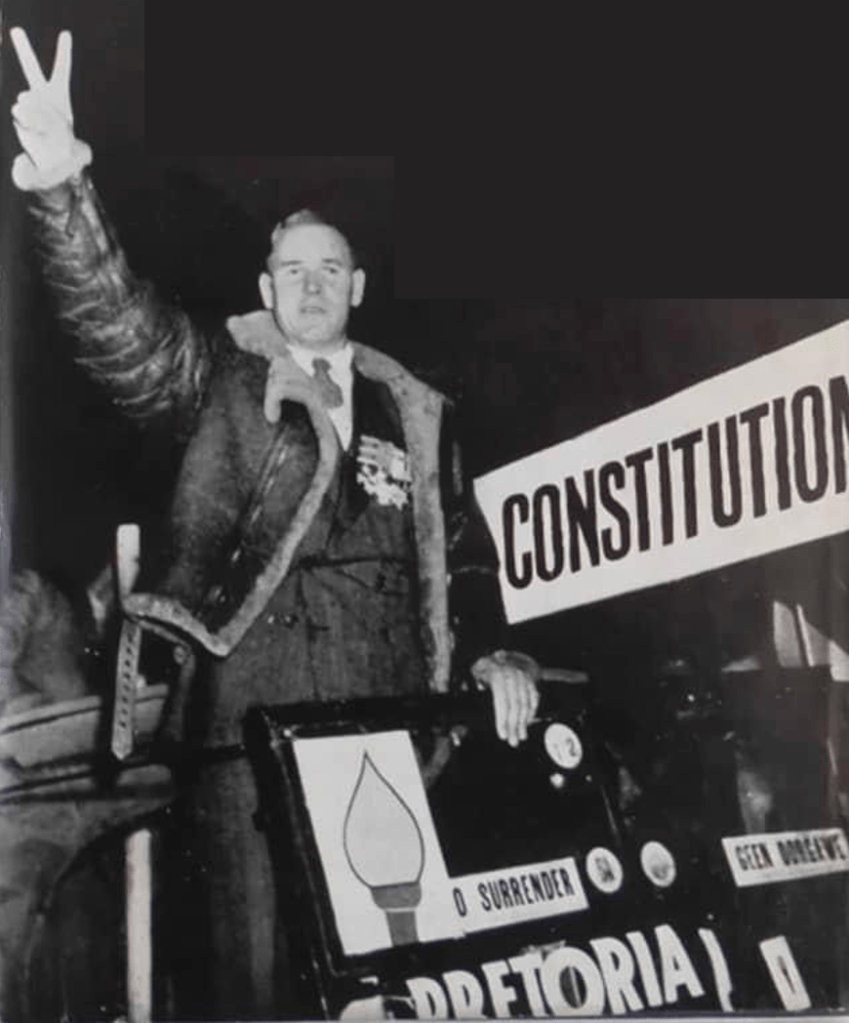 Sailor Malan had even gone as far as warning the National Party and its Apartheid policy that they would meet the same ignominious end as Mussolini and Hitler, and warned that their intention was to implement a facist state and create ‘race hate’ as he put it. In hindsight his warning and prediction would prove right. During that rally in Cape Town, Dolf de la Rey took the microphone and laid into the National Party, as a respected Boer War vet he pulled no punches. Also, this is a inconvenient truth, Dolf de la Rey headed up an entire contingent of Boer War Afrikaner veterans who did not feel that removing Cape based black and ‘coloured’ votes from the voters roll and relegating them to secondary citizenship was a good idea, nor was it reflective of them as Afrikaners, and nor was it the ideals of freedom for they had fought for in the Boer War.