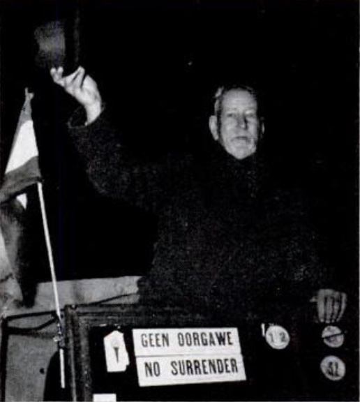 Two proud Afrikaners on their way to lead a Torch Commando rally against the Nationalists in Cape Town in what was called a ‘steel commando’. Here’s the AP clip: