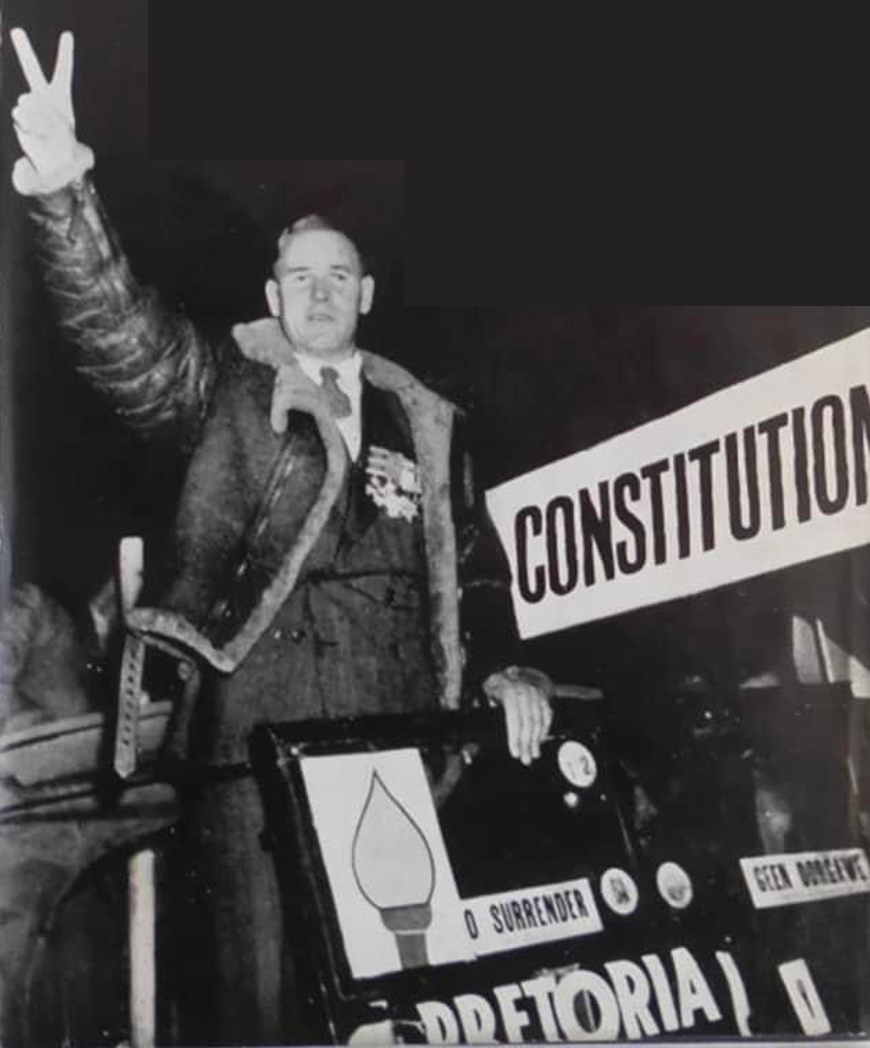 The National Party would go onto banning the Torch Commando in effect using legislation in the form of the anti-Communist act to gag it and force all the senior officers and judges in it to resign. They would wipe out the legacy for the Torch from all things public, when Sailor Malan died they refused to allow any service personnel to attend his funeral in uniform, they even forbade the SAAF from laying a wreath – all official obituaries were changed to remove anything to do with The Torch. As for Kmdt de la Rey, simply cast away into obscurity, nothing in his obituary – nothing at all, nobody would be researching him and writing him into the folklore and history of the ‘2nd war of independence’ as they phrased it, nor has anyone written him into the anti-Nationalist narrative – that was reserved for ‘the King’s sell-outs’. The capture of Winston Churchill would be attributed to many others, Oom Dolf would be forgotten.
