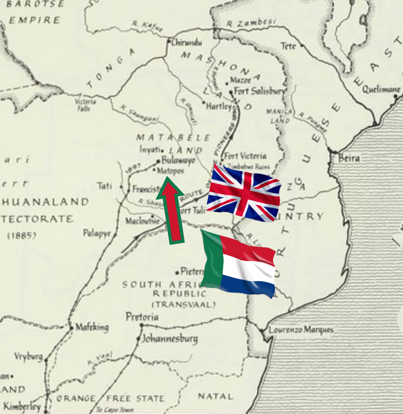 So, what’s the beef over Rhodesia? Well, it starts in 1887, Paul Kruger attests that although relations with the Matabele (controlling what is modern Zimbabwe) and the Boers had initially been strained, Boers hunting in their region gradually improved relations and the leader of the Matabele, Chief Lobengula, sent an envoy to Pretoria to request the ZAR take over his Chiefdom (comprising Mashonaland and Matabeleland) as a ZAR Protectorate. The ZAR in return responded by sending their envoy, Piet Grobler with a draft treaty of ZAR annexation to see Chief Lobengula in Bulawayo (Kruger himself drafted the treaty). The treaty was read to Chief Lobengula who requested time to consult the terms of the treaty with his indunas. Then, in mysterious circumstances, Grobler was murdered before the treaty could be signed.