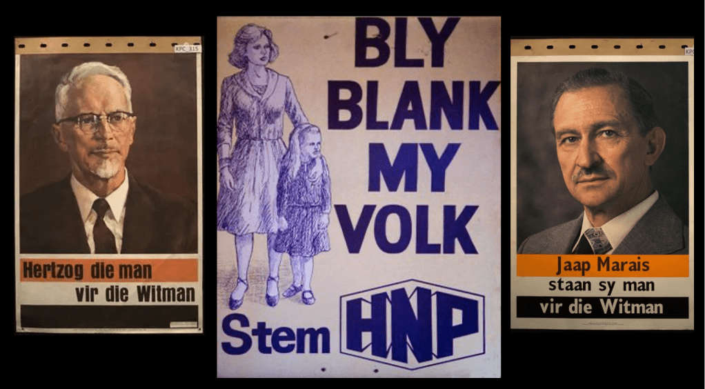 After years of military and education conditioning, sanitising of media, years of banning and/or gagging of white political opposition – to the majority of ‘white’ male youth and young white adults – both English and Afrikaans – by the 70’s and 80’s the National Party presented itself as the only way forward for ‘white’ survival in Africa in light of a “Total War” against the “Total Onslaught”.