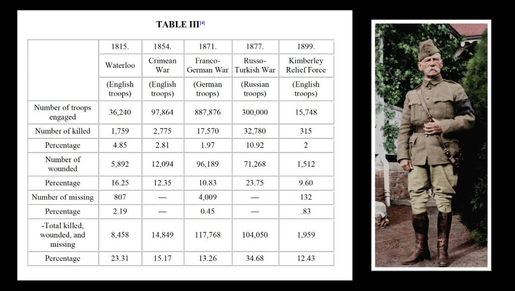 Bottom line – on casualties – statistically speaking the British command in the Boer War actually was pretty good given the improvements over time in doctrine from Waterloo to the Crimean War (see chart above), the Boer command on controlling casualties and survivability on the other hand was much poorer. One thing the British are NOT are “bad shots” and their Commanders are certainly NOT “Donkeys”. Simply put, if you were British you had a better chance of surviving combat, the point where the metal is flying around, than if you were a Boer.