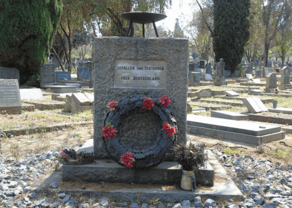 Their Memorial Service for Rudolf Hess is held at a German War Memorial in Pretoria, its a cenotaph to the German Fallen of both war – World War 1: 1914-1918 (written on one side) and World War 2: 1939-1945 (written on the other side), complete with metal wreath and eternal flame with accompanying dish. The cenotaph is strangely enough located in the middle the Pretoria West Cemetery – also known as New Cemetery, Newclare Cemetery, Pretoria West Cemetery – address: 322 Rebecca St, Philip Nel Park, Pretoria. It’s still there.3