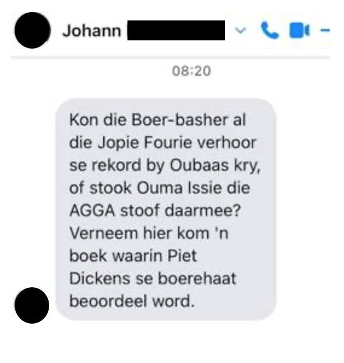 Let’s get to the peanut gallery in these Boer War aligned social media platforms, these are some of the comments and social media mails sent to me – either directly or on my media platforms, they speak for themselves,I won’t go into all of it, but here’s some choice examples: