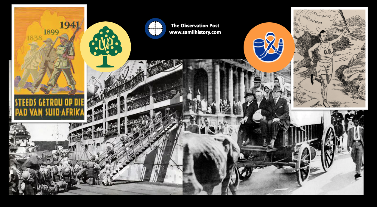 Long and short – it worked, Klopper would step back from his success and call it providence, divine intervention …. to quote him – a “sacred happening”. The Ossewabrandwag would carry this new Afrikaner unification under its singular identity like a ‘flame torch’, spread it like ‘wildfire’ (hence the name) from the centenary celebrations into every Afrikaner cultural organisation. The Broederbond sat with the Ossewabrandwag (OB) and the National Party (NP) and agreed the ‘Cradock Agreement’ – the spreading of this Afrikaner nationalist identity on the ‘Cultural Front’ of Afrikanerdom would be the ambit of the OB, whereas on the ‘Political Front’ of Afrikanerdom – the National Party (and the Volks Party, Afrikaner Party as well as other political organs like the ‘Boerenasie’ and ‘New Order’) would carry this identity through – and they would carry it well past the 1948 National Party election win, the 1961 ‘forward to a white Republic’ plebiscite win, all the way through ‘Apartheid’ and it’s still prevalent in modern Afrikanerdom to this day.