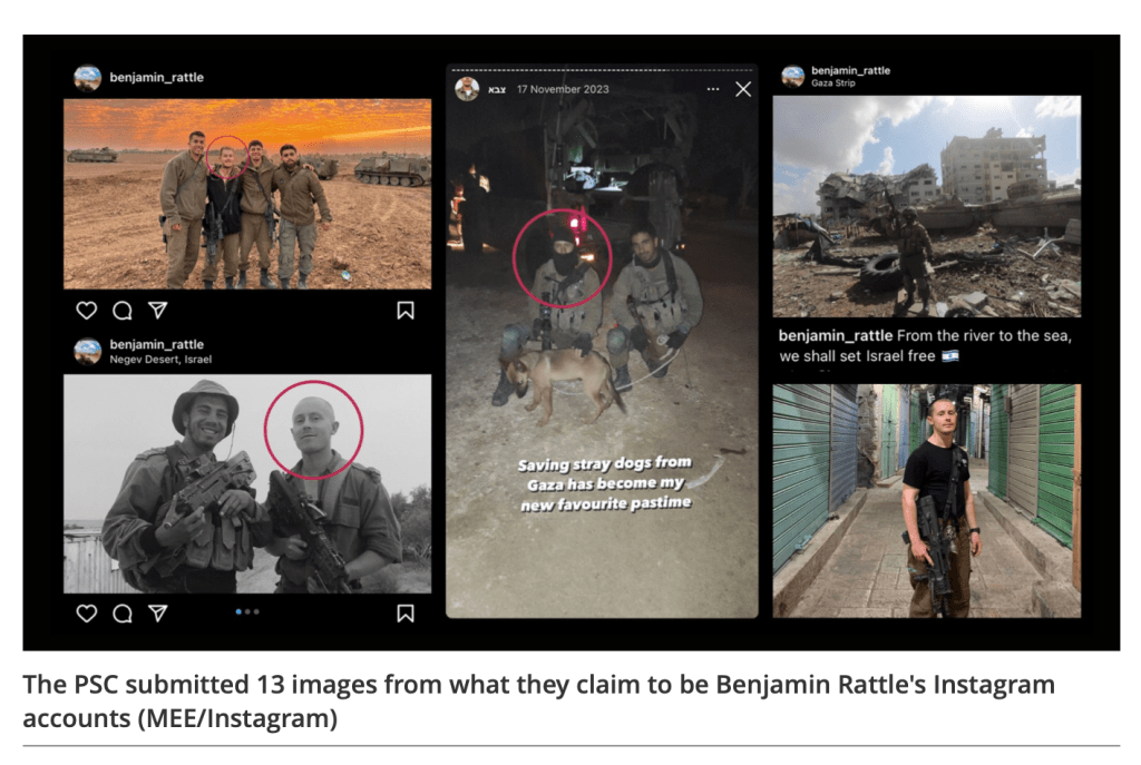 - Middle East Eye: South African activists file criminal complaint against citizen accused of fighting for Israel – PSC submitted 13 images from what they claim to be Benjamin Rattle’s Instagram accounts (MEE/Instagram) ↩︎