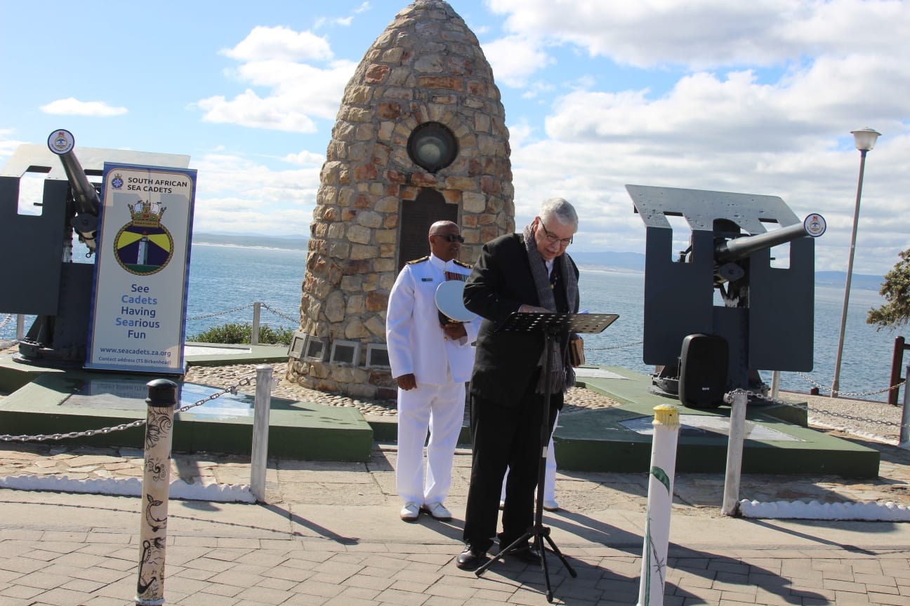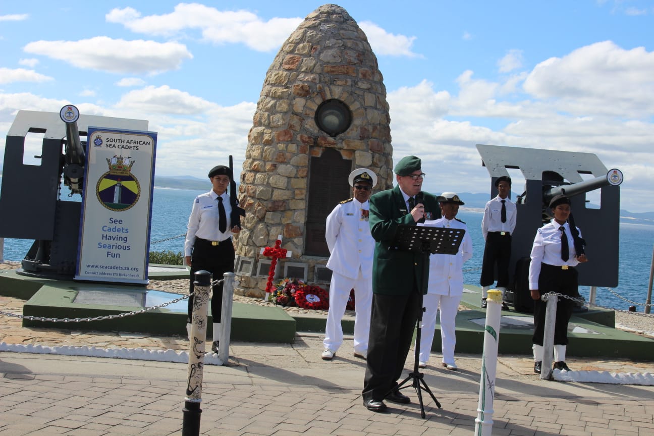 Their annual parade in Hermanus is cleared with the municipality and the site (the Cenotaph at the Old Harbour) prepared and made ready – an appropriate location with its two naval defensive guns facing landward as a symbol of peace. The TS Birkenhead Sea Cadets also working in conjunction with the South African Navy Veterans Association, and with the assistance of the South African Legion and the Memorable Order of Tin Hats – Seagull Shellhole, Hermanus.