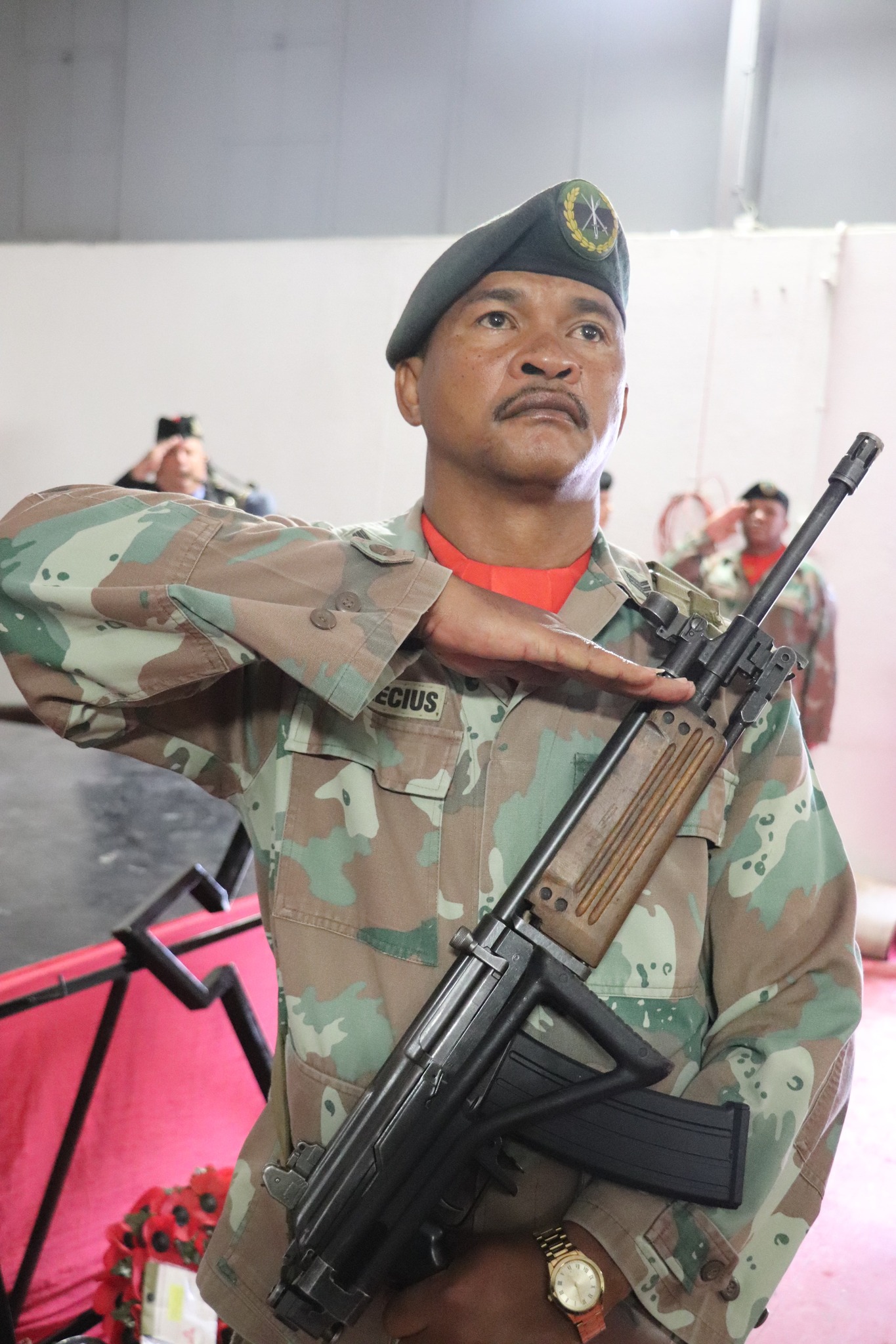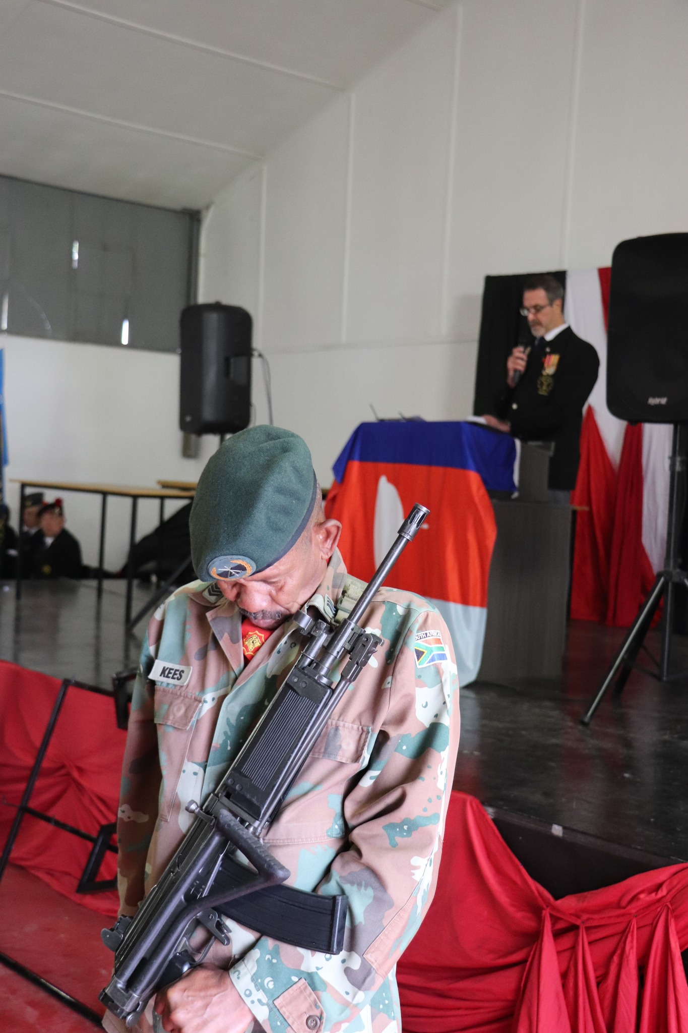 I am proud to stand with men, who in their service to their country recognise and remember all who were lost serving for their country, regardless of colour, culture or politics. I know of three PK survivors personally – Cameron Kinnear, a fellow Legionnaire and Lt Noel Dreyer standing here and Chris Lochner also standing here today, and is with them that the memory of not only their colleagues lost trapped in the ship, but they also carry the trauma of that night with them – it is within them as military veterans that the flame of remembrance is carried, and it with us as their comrades in arms with whom the solum act of remembrance lies.