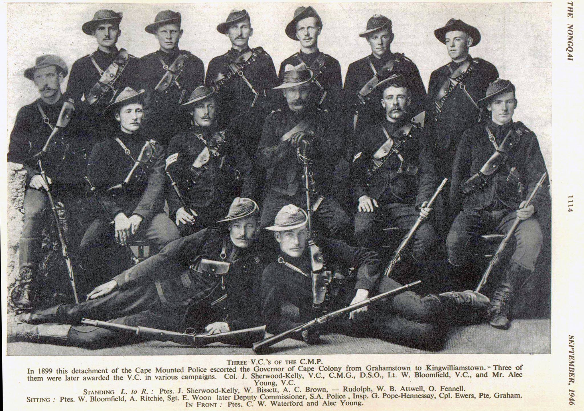 Sgt Maj Alexander Young became recognised as one of the best horseman in the British Army and as a rough rider was unexcelled. It was after he had been injured by a horse that he retired from the British Army and came to the Cape Colony in August 1899 when The South African War (1899-1902) i.e. Boer War 2 broke out, here he joined colonial forces, attesting in the Cape Mounted Police, and as a skilled horseman he was soon picked to form one of a mounted bodyguard for Lord Milner on an official visit to the Transkei.