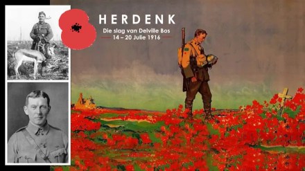 This is the Afrikaans text version of the landmark WW1 poem “In Flanders Fields” written by Lt Col John McCrae as translated into Afrikaans for the 100 year anniversary of The Battle of Delville Wood and the Somme Offensive in July 2016.
