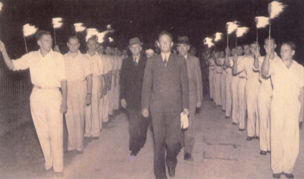 Another ‘Volksbeveging’ (People’s movement) also known as ‘African Gentile Organisation’ was also formed in Cape Town by H.S. Terblanche. The National Workers Union (Bond van Nasionale Werkers) – known as the Brown-shirts was established by Dr. A.J. Bruwer in Pretoria in September 1934. Finally a group called the ‘Orange-shirts’ under Frans Erasmus, who at that stage was the Secretary to the Federal Council of the National Party and the Minister of Parliament for Moorreesburg, Erasmus would go onto become the National Party’s Minister of Defence after 1948.10