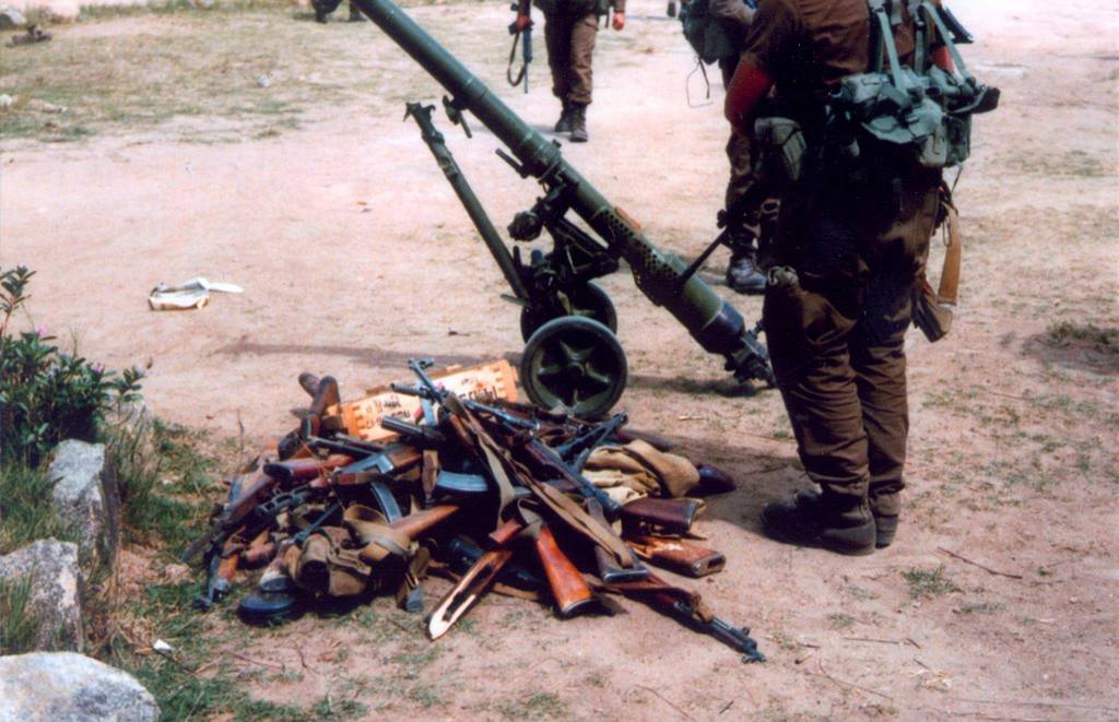 In ‘mopping up’ in Cassinga the paratroopers recovered a relatively small number of mainly Soviet weapons, these included a B-10 Recoilless Rifle, AK-47, AKM and SKS Assault rifles and carbines, boxes of RGD-5, RG-42 and F1 Hand Grenades, some TM-57 Anti-Tank Mines, RPG-7 Anti-Tank Rockets and 82mm B-10 recoilless Rockets still in their tin transit canisters. Uniforms (Soviet and East Bloc supplied) and combat boots, AK-47 and AKM Bayonets and some crates of AK-47 Ammunition were also recovered. However, as can be seen in these photos of the PLAN arms recovered, the quantity was small.